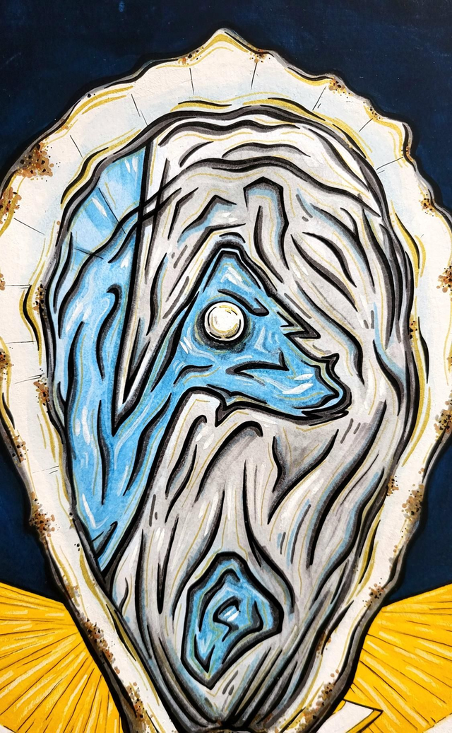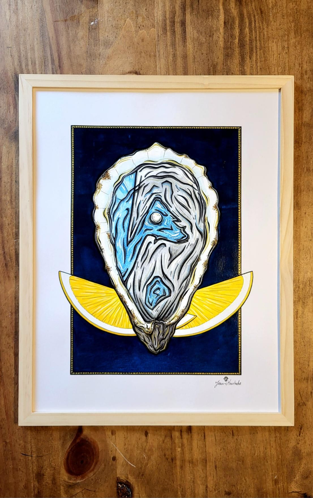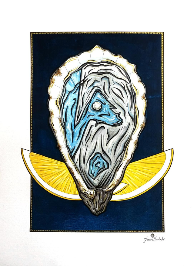 Un hommage à nos perles locales du bassin d'Arcachon, réalisé à la peinture acrylique, aux marqueurs à dessin et aux marqueurs à peinture ainsi qu'aux crayons à aquarelle et aux feutres à alcool.